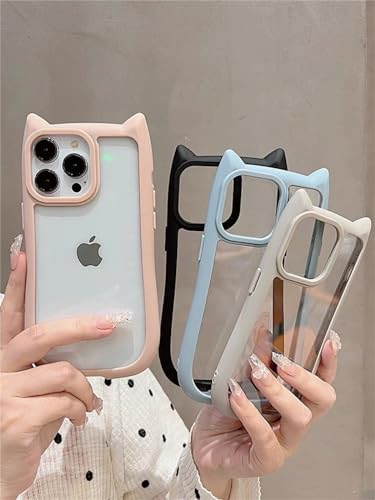 iPhone 16 Plus 用 シリコン ケース 可愛い 猫耳 アイフォン ケース 透明 携帯電話カバー レンズ 女性向け 柔らかい