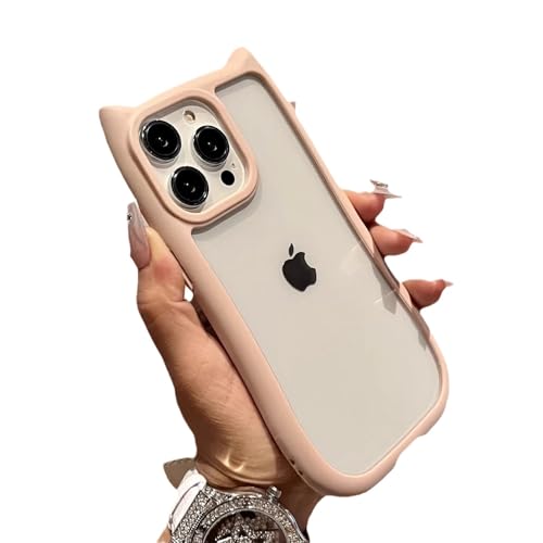 iPhone 14pro 用 シリコン ケース 可愛い 猫耳 アイフォン ケース 透明 携帯電話カバー レンズ 女性向け 柔らかい ピンク