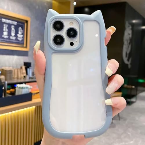 Veaol 向けの iPhone 17 用の シリコン ケース 可愛い 猫耳 透明 携帯電話カバー レンズ 女性向け 柔らかい 青