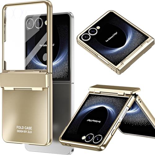 NINKI適応galaxy z flip7 カバー [SC-55F|SCG35] ヒンジ保護 メッキ PCフレーム フィルム一体型 おしゃれ 男女兼用 人気 折りたたみ式 耐衝撃性 手触り良き 背面スクリーン保護フィルム ワイヤレス充電 ギャラクシーzフリップ7 ケース (シャンパンゴールド)