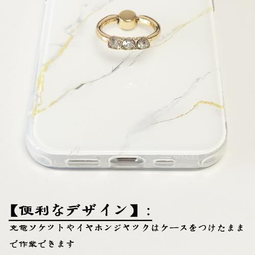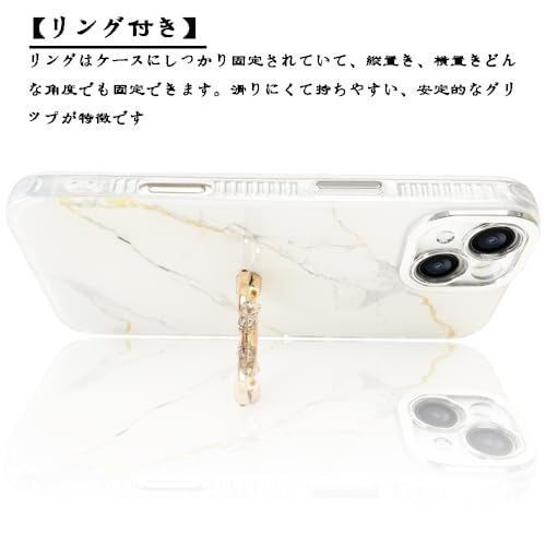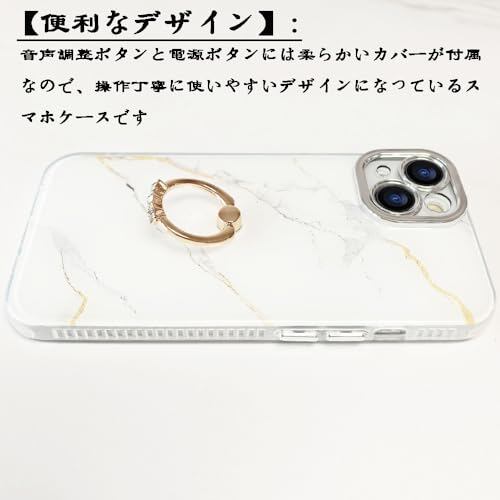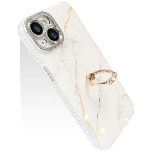 JOOBOY スマホケース 対応 iPhone 15 ケース リング付き 大理石柄 レンズメッキ加工 かわいい キャラクター ディズニー 美しい おしゃれ 女性 人気 保護カバー 薄型 軽量 あいふぉん15 携帯電話かばー カバー (ホワイト, iPhone 15)