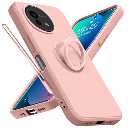 AQUOS Wish 4 用 ケース リング ストラップ付き SH-52E カバー ストラップホール付き ソフト シリコン ケース おしゃれ 耐衝撃 軽量 薄型 スタンド機能 車載ホルダー対応 アクオス ウィッシュ4 携帯ケース ピンク R-YTDS-Wish4-07