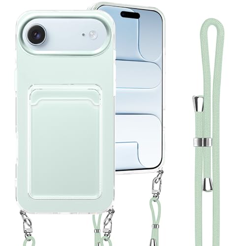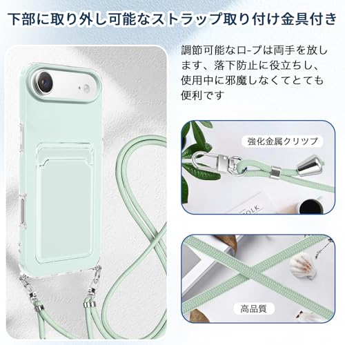 iPhone Air 用 ケース 背面ポケット カード収納 ショルダー iPhone Air 用 カバー 斜めかけ 縄掛け 肩掛け 首掛け ストラップ付き 薄型 軽量 TPU バンパー 韓国 可愛い かわいい アイフォンAir 用 スマホケース (ミントブルー)