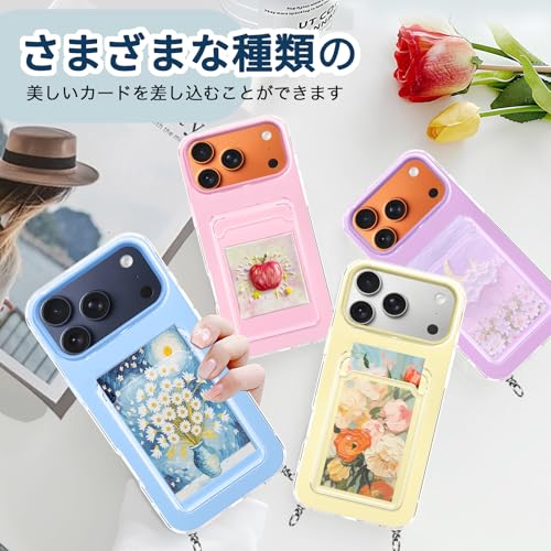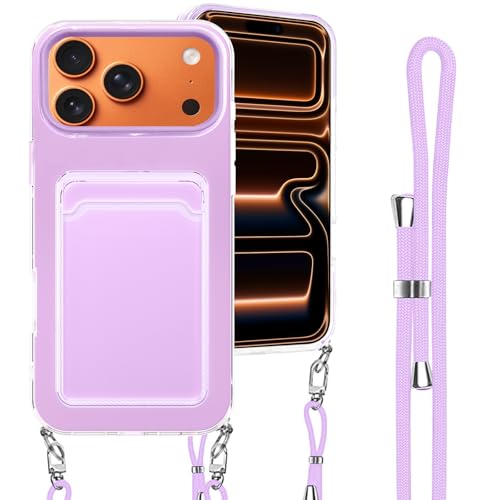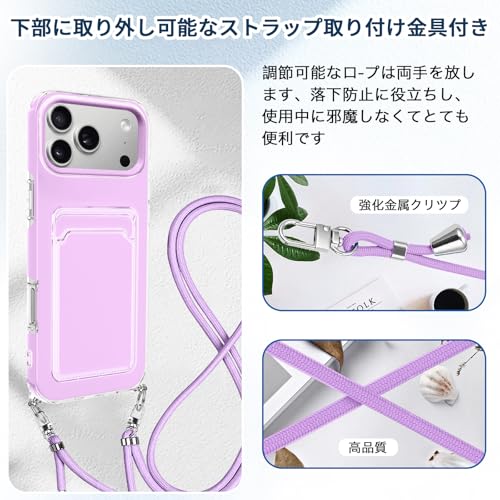 iPhone 17 Pro 用 ケース 背面ポケット カード収納 ショルダー iPhone 17Pro 用 カバー 斜めかけ 縄掛け 肩掛け 首掛け ストラップ付き 薄型 軽量 TPU バンパー 韓国 可愛い かわいい アイフォン17プロ 用 スマホケース (パープル)