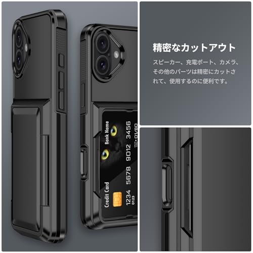 VOFOLEN for iPhone 16 ケース カード収納 ( 4枚) 背面 手帳型 アイフォン16 ケース カード入れ 米軍MIL規格 耐衝撃最強 いphone16 軽量 マット質 指紋防止 落下防止 スマホ iPhone 16 ケース 6.1インチ ブラック