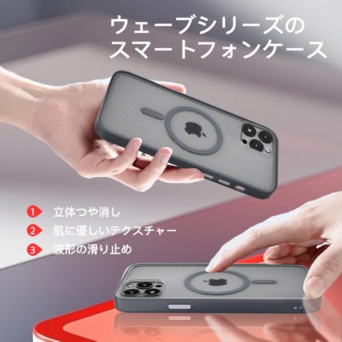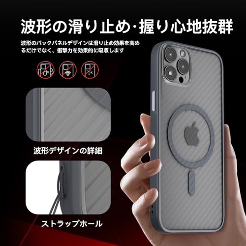iPhone 12 Pro Max ケース MagSafe対応 【立体波形デザイン】 耐衝撃 肌に優しい感触 滑り止め ワイヤレス充電対応 いphone 12 ProMax スマホケース 衝撃吸収 ストラップホール付き アイフォン 12ProMax カバー 指紋防止 落下防止 防塵 傷防止 人気 半透明 (アッシュ)