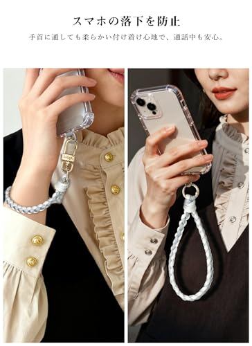 [APEGG] スマホストラップ ハンドストラップ 手首 携帯ストラップ 編み込み リストストラップ ストラップホルダー2枚付き 軽量 おしゃれ 落下防止 全機種対応 Moon Grey