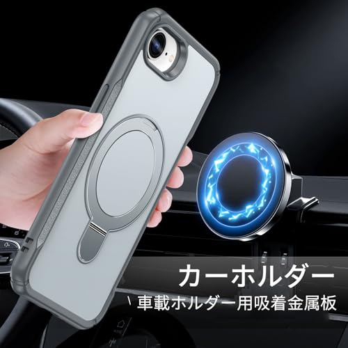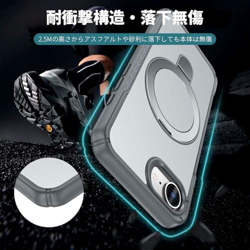 iPhone 16e 用 ケース 耐衝撃 スタンド付き Magnetic対応 アイフォン 16e カバー リング TPU+PC ワイヤレス充電 米軍MIL規格取得 スタンド機能 (グレー)118-IP16E-03