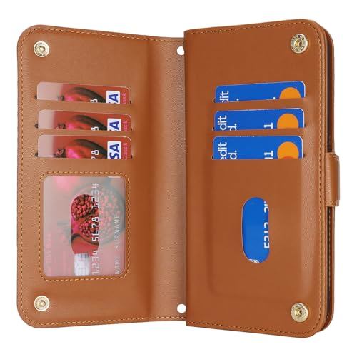 for iPhone 13 ケース アイホン 14 肩がけ 首掛け 斜め掛け ファスナー ストラップ付き ショルダーケース 手帳型 CASE カバー SunYoo カード収納 横置き スタント PUレザー 財布型 for iPhone14 iPhone13 ブラウン
