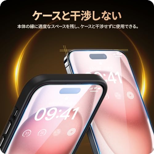 【薄型ガラス・ケースと干渉せず】厚さ0.33mmの超薄型で、透過率は99.99%。驚くほど高い透明度を誇っており、画面の鮮明さや美しさを損なわずにスマートフォン本来の美しい画面をお楽しみいただけます。2.5Dラウンドエッジ加工が施されており頑丈でありながら、装着後もスマートフォンのデザインを損なわず、ケースとの相性も抜群です。