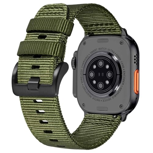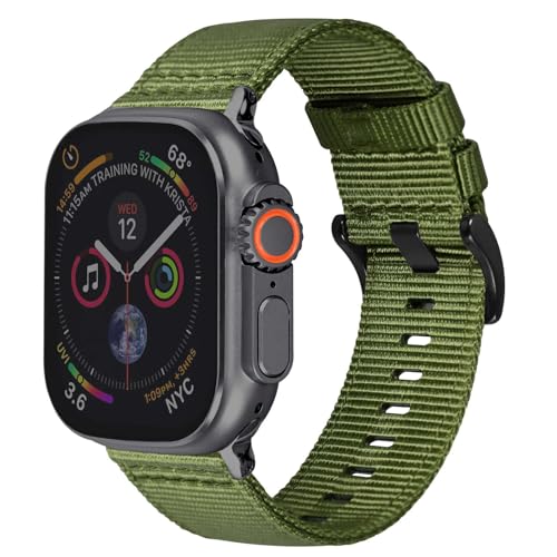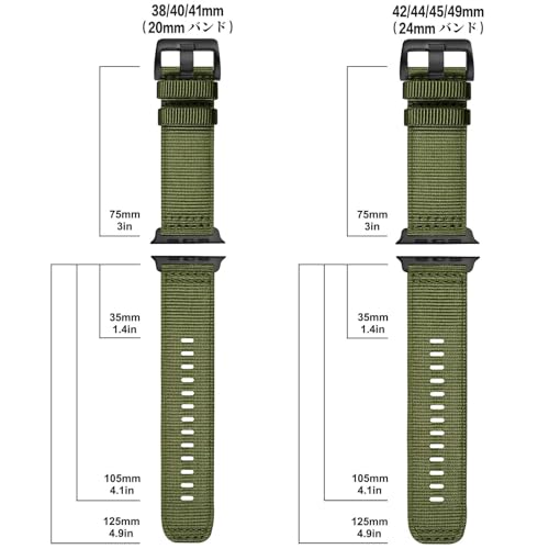 MABEKSコンパチブル Apple Watchバンド 42mm 44mm 45mm 49mmミリタリーナイロン時計バンド オリーブグリーン·ブラックバックルスマートウォッチバンド 男性用