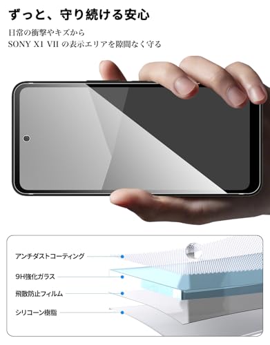 【高硬度9H ・飛散防止】日本旭硝子材料を使用し、沖撃に強く、落下、摩擦、沖撃でも簡単には割れません。沖撃を最小限に抑え、画面の破損を抑え、画面をスクラッチから保護します。