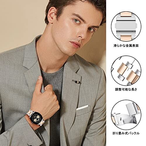 [ReHowy] Amazfit T-Rex 3 Pro 48mm/Helio Strap/Balance 2/Balance/Cheetah 対応 交換バンド 22mm 交換ベルト ビジネス風 アマズフィット バランス2 バンド ステンレス製 サイズ調節可能 調整工具付き コンパチブル Amazfit Bip 6/Bip 5/GTR 4 替えベルト シルバー/ローズゴールド