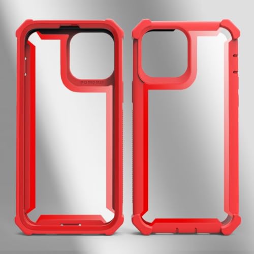 iPhone 17 Pro Max 対応 保護ケース、アイフォン17promax 用 スマホケース 2重構造 嵌め込み式バンパー 耐衝撃 ケース 透明バックカバー,レッド