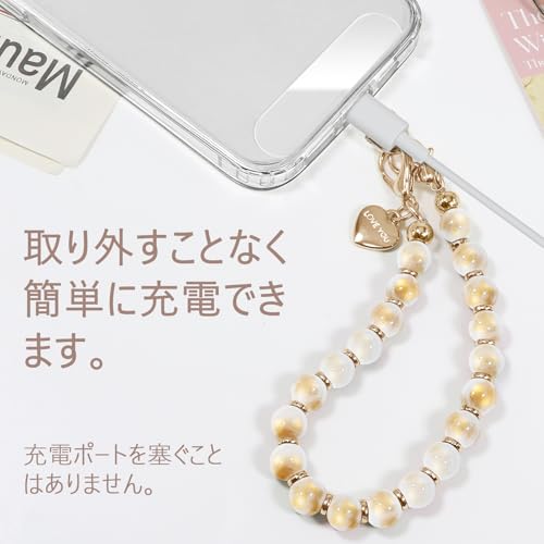 【高品質素材で安心&快適] 色褪せしにくく、滑らかな手触りのピ一ズを採用。金具部分はサピに強く耐久性にも優れています。ストラップを付けたまま充電も可能で、日常使いに最適。スマ木をおしやれに飾りながら、落下防止にも役立ちます。