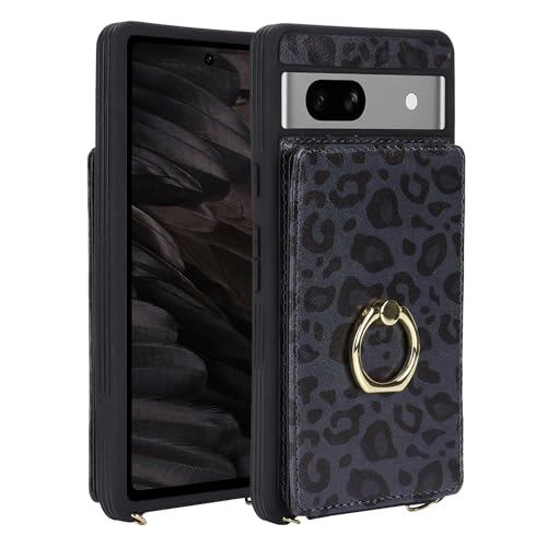 Google Pixel 7a ケース ショルダー リング付き ストラップケース ショルダーケース ポシェット pixel7A ケース docomo ドコモ au SIMフリー softbank 全対応 ピクセル 7A カバー グーグル ピクセル7A カバー pixel7A スマホケース 適用 case iCoverCase カードケース スタンド 斜め掛け 携帯カバー 豹柄 ヒョウ柄 ブラック