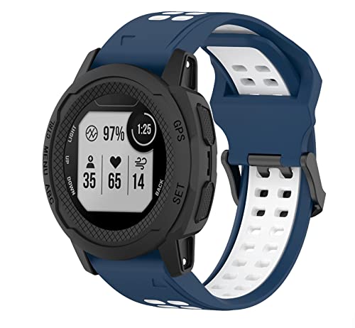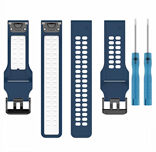 for GARMINガーミン Approach S70 47mm/S62/Forerunner 965/955 バンド ベルト 交換バンド 通気性に優れ シリコン 互換品 Fenix8 47mm/7 Pro/7/Instinct2/instinct/ForeAthlete 945/Fenix6/5なども対応 交換ベルト 替えバンド ストラップ アクセサリー (ダークブルー+ホワイト)