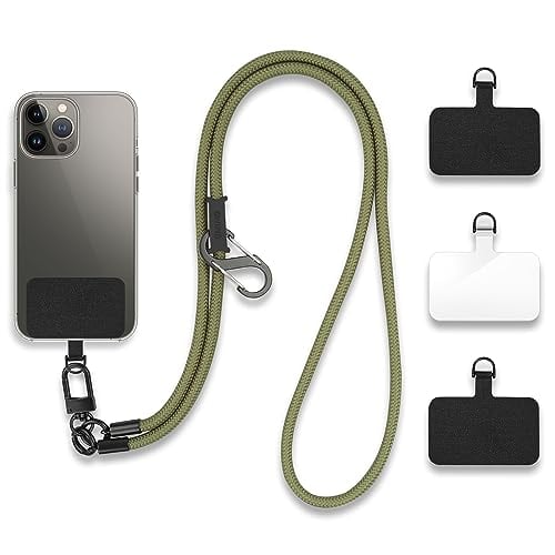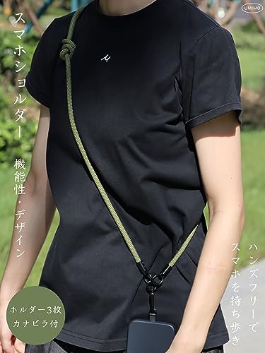 [UMIMO] スマホショルダー 直径7mm【ホルダー3枚 S型カラビナ付】 スマホストラップ アウトドア 携帯ストラップ 斜めがけ 肩掛け 首掛け 落下防止 調節可能 全機種対応 (グリーン)