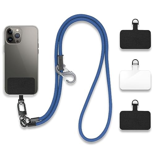 UMIMO スマホショルダー 直径7mm【ホルダー3枚 S型カラビナ付】 スマホストラップ アウトドア 携帯ストラップ 斜めがけ 肩掛け 首掛け 落下防止 調節可能 全機種対応 (ネイビー)