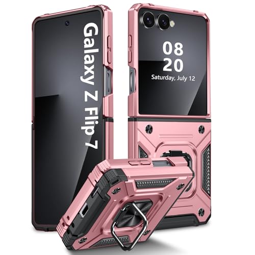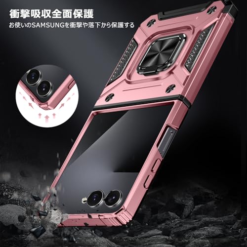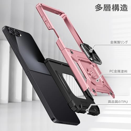 TMUJWS Galaxy Z Flip7 用ケース リング 衝撃吸収 耐衝撃 TPU+PCバンパー 二重構造 米軍MIL規格 全面保護カバー 滑り防止 車載ホルダー対応 擦り傷防止 滑り止め 軽量 薄型 ギャラクシー フリップ7 用ケース 6.85インチ 指紋防止 耐久 おしゃれ 人気 携帯カバー ピンク MZ91-49
