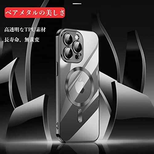 iyite iPhone 15 ケース ハイブリッドケース HaloLock付き MagSafe対応 磁気充電 iphone15ケース アップグレードされた電気メッキの ソフトシェル 米軍MIL規格 SGS認証 衝撃保護 傷に強い背面 クリア 黄変しにくい ストラップホール付き 6.1インチ ブラック