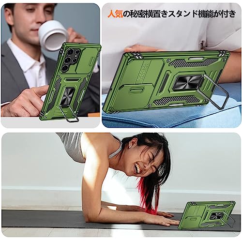 Galaxy S25 Ultra 用 ケース リング付き 衝撃吸収 耐衝撃 スタンド機能 米軍MIL規格 ギャラクシーs25ウルトラ 用ケース 全面保護 360°回転 滑り落ちにくい 人気 おしゃれ 携帯カバー 緑 WY95-113