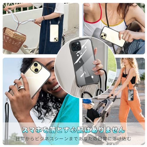 Yidahe iPhone 15 Plus 用 ケース クリア ショルダー ストラップ付き アイホン15 プラス カバー 透明 肩掛け 縄掛け 斜めかけ TPU メッキ加工 耐衝撃 全面保護 薄型 韓国 可愛い iPhone 15Plus 用 6.7インチ 対応 スマホケース (ブラック)