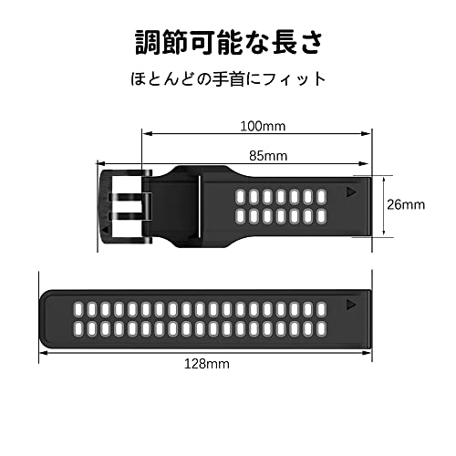【人間工学に基づいたデザイン】高品質なシリコン素材を採用し、柔軟性と頑丈さを兼ね備えたバンドです。通気穴規則に設計されており、通気性よくなり、汗かきしにくいつも涼しく腕首につけられて快適なスポーツ時間を楽しめます。【様々な場合に適用】シンプルなスポーツ仕様ですが、旅行、デート、ビズネスなど、様々な場合にぴったりで、様々な服装にもお似合いできて、プレゼントとしても素敵な選択です
