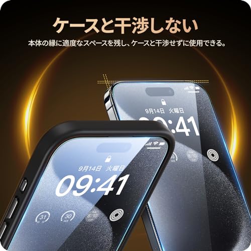 【薄型ガラス・ケースと干渉せず】厚さ0.33mmの超薄型で、透過率は99.99%。驚くほど高い透明度を誇っており、画面の鮮明さや美しさを損なわずにスマートフォン本来の美しい画面をお楽しみいただけます。2.5Dラウンドエッジ加工が施されており頑丈でありながら、装着後もスマートフォンのデザインを損なわず、ケースとの相性も抜群です。