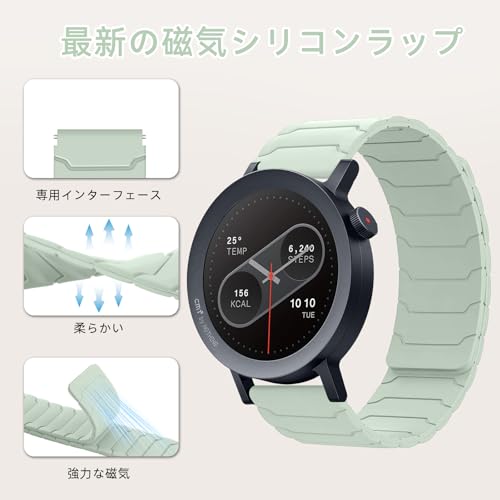 Hinnwer 22mm シリコン バンド CMF by Nothing Watch 3 Pro/CMF by Nothing Watch Pro 2 対応 スマートウォッチ バンド 磁気シリコン 時計ベルト マグネット スポーツ 交換ストラップ 柔らかい 防水 長さ調節 交換バンド ナッシングウォッチプロ 3/2 用 (ミントグリーン)