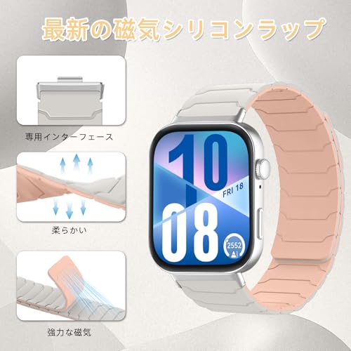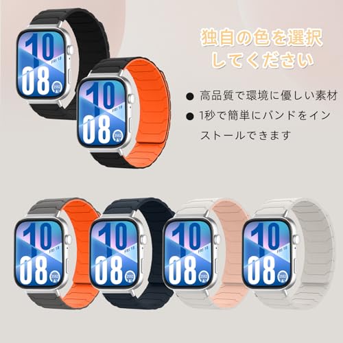 [Hinnwer] シリコン バンド Huawei Watch Fit 4 Pro/Huawei Watch Fit 4 / Fit 3 対応 ファーウェイ スマートウォッチ バンド 磁気シリコン 時計ベルト マグネット スポーツ 交換ストラップ 柔らかい 防水 長さ調節 交換バンド ファーウェイフィット4プロ / ファーウェイフィット4/3 用 (スターライト/ピンク)