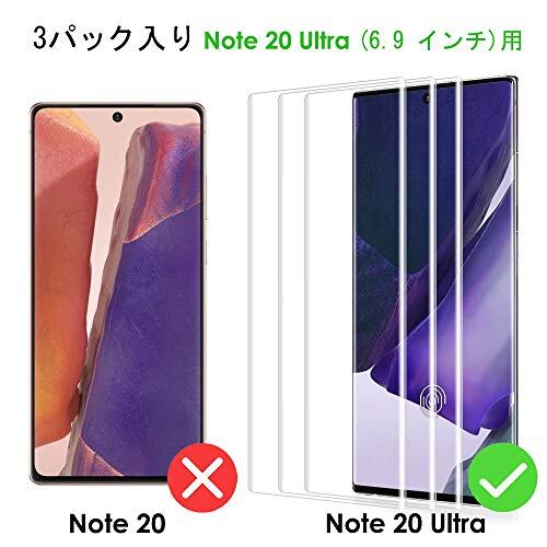 【3枚入】Galaxy Note 20 Ultra フィルム UV 全面吸着 Akcoo Note 20 ultra ガラスフィルム 超音波指紋認証対応 高感度タッチ ケースに干渉せず 保護フィルム