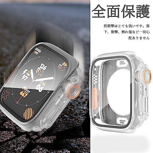 Miimall【Ultra仮装防水ケース】対応 Apple Watch Series 7/8 45mm ケース 本体を全面保護 アップルウォッチ45mm 3in1 背面カバー ガラスフイルム 側面カバー 防曇 新型ケース スポーツ お風呂Apple Watch 8 防水ケース フイルム(45mm|クリア)