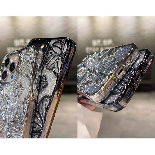 Sakanana 兼用 スマホケース iPhone13 iPhone14 ケース 韓国 可愛い 花柄 立体的 キラキラペーパー付き クリアケース オシャレ 人気 ソフトケース 指紋防止 薄型 軽量 ストラップホール付き アイフォン カバー(シルバー)
