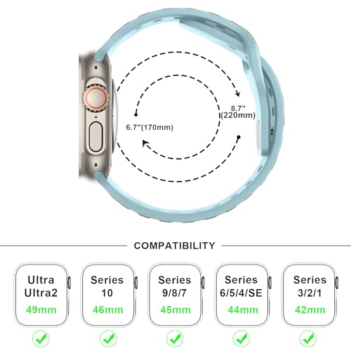 Anlinser コンパチブル アップルウォッチ バンド49/46/45/44/42mm, 防水シリコンスポーツストラップコンパチブル Apple Watchバンド Ultra 3/2/1 シリーズ SE 11 10 9 8 7 6 5 4-1 (ライトブルー)