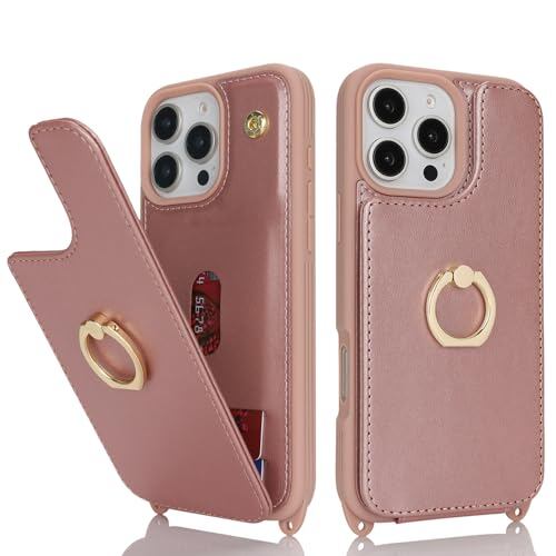 iPhone 16 Pro Max ケース ショルダー リング付き ストラップケース ショルダーケース ポシェット アイフォン 16プロマックス リング付き カバー アイホン 16proMax スマホケース いphone 16proMax 携帯カバー case 適用 iCoverCase カードケース スタンド 斜め掛け 携帯カバー ピンク