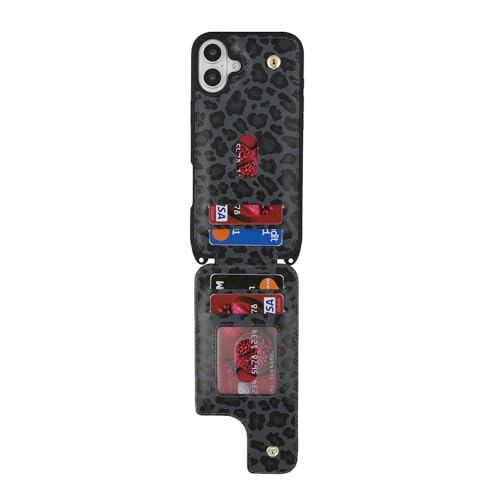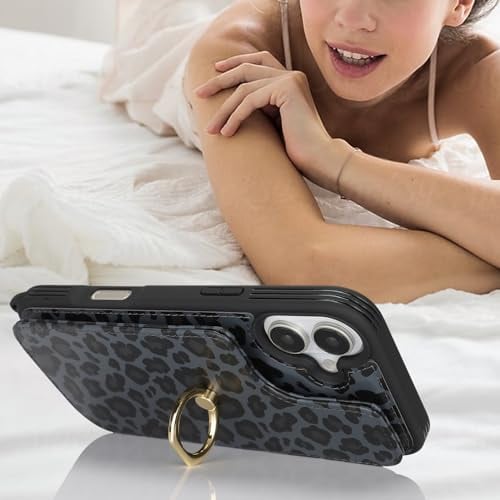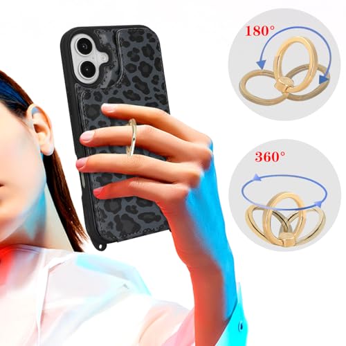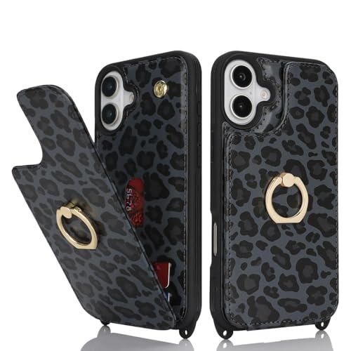 iPhone 16 ケース ショルダー リング付き ストラップ ショルダーケース ポシェット アイフォン 16 リング付き カバー アイホン16 いphone 16 携帯カバー case 適用 iCoverCase カード スタンド 斜め掛け 豹柄 ヒョウ柄 ブラック