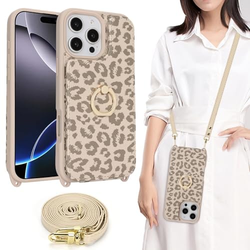 iPhone 16 Pro Max ケース ショルダー リング付き ストラップケース ショルダーケース ポシェット アイフォン 16プロマックス リング付き カバー アイホン 16proMax スマホケース いphone 16proMax 携帯カバー case 適用 iCoverCase カードケース スタンド 斜め掛け 携帯カバー 豹柄 ヒョウ柄 ベージュ