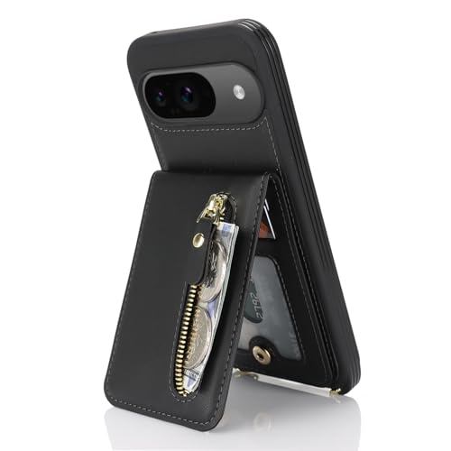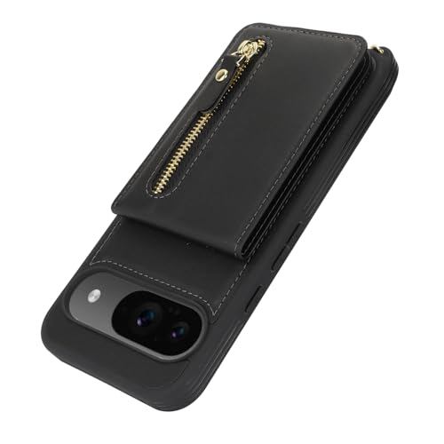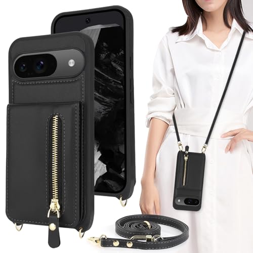 Google Pixel 9 ケース 通用 Pixel 9 Pro ショルダー ストラップ付き ショルダーケース 背面フリップ 上下開 手帳型 pixel9 pixel9pro docomo au SIMフリー softbank 対応 グーグル ピクセル9 カバー ピクセル9プロ case 適用 iCoverCase カード収納 縦置き スタンド 肩がけ 首掛け 斜め掛け ブラック