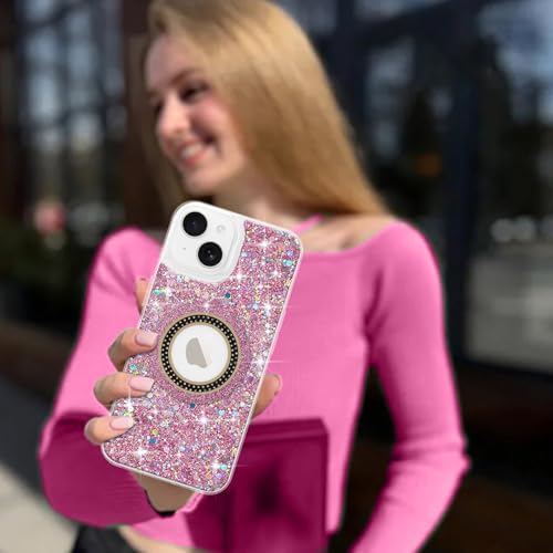 Teageo iPhone 14 Plus/15 Plus 対応 ケース、MagSafe対応 韓国 女性 キラキラ 輝く 磁気 軽薄型 携帯電話カバー 柔らかく 耐衝撃 適用 iPhone 14 Plus/15 Plus 保護ケース(ピンク)