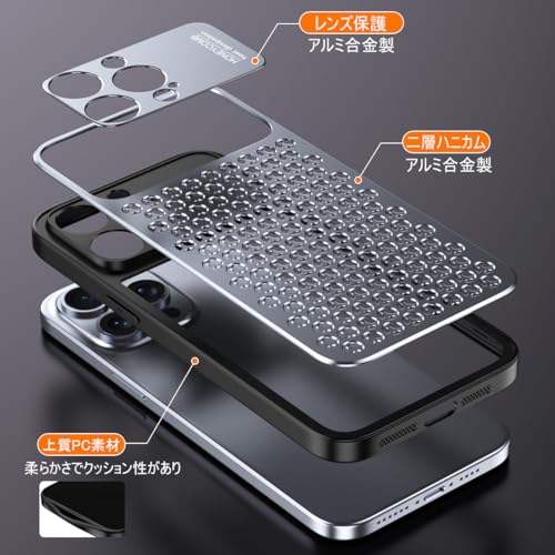 YUZOR iPhone 14 Plus 用 ケース アルミ合金 冷却 放熱 スマホケース 二層立体なハニカム構造 メッシュ 耐衝撃 米軍保護工学 アイフォン14 Plus カバー ストラップホールあり 6.7インチ (iPhone14plus 銀) FWJS-14plus-yin