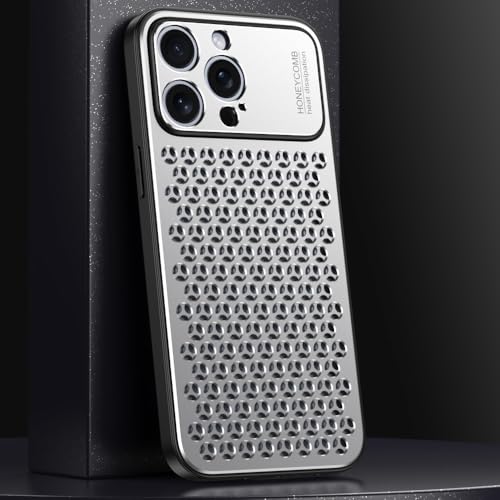 YUZOR iPhone 14 Pro 用 ケース アルミ合金 冷却 放熱 スマホケース 二層立体なハニカム構造 メッシュ 耐衝撃 米軍保護工学 アイフォン14 Pro カバー ストラップホールあり 6.1インチ (iPhone14Pro 銀) FWJS-14Pro-yin