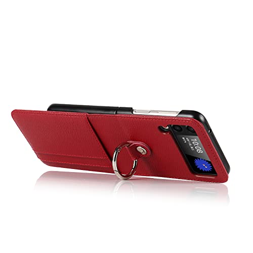Pelanty For Galaxy Z Flip4 ケース縄掛け リング SC-54C SCG17 背面カバー 肩掛け首かけ斜めがけ ショルダー ストラップ付き 牛革製品 本革レザー Zflip4 sc54c 携帯カバー 財布型カード収納 スタンド機能 薄型軽量 PC サムスン ギャラクシー Zフリップ4 スマホケース 耐衝撃 全面保護 レッド