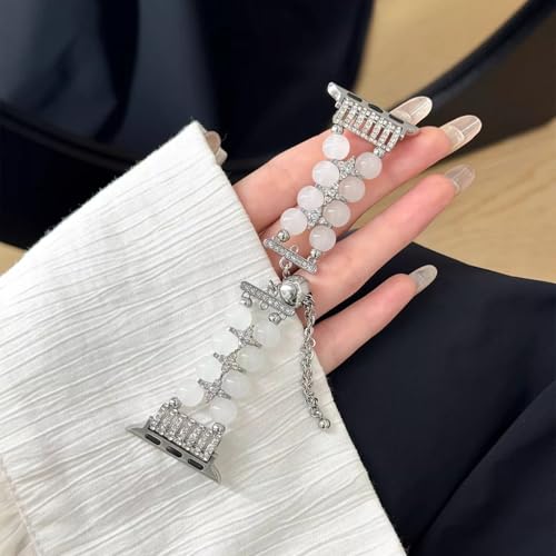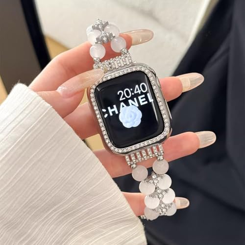 [PANDA MONO] コンパチブル アップルウォッチ バンド 49mm 46mm 45mm 44mm 42mm 41mm 40mm 38mm ステンレス 交換ベルト おしゃれ 可愛い 女性 レディース クリスタルパール 長さ無段階調整 通気 防汗 Watch Series Ultra/Ultra 2/10/9/8/7/6/SE/5/4/3/2/1 に対応 (アゲートホワイト, 49mm/45mm/44mm/42mm/46mm(Series10))