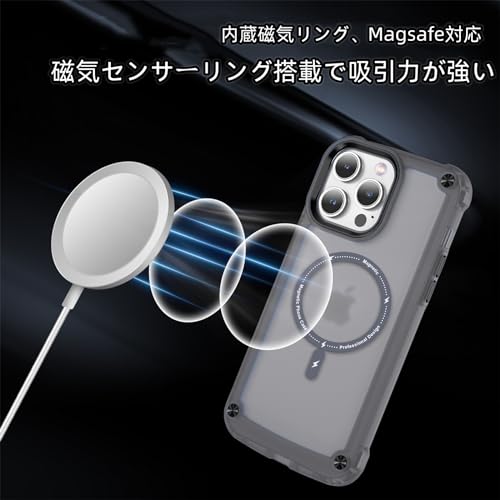 Kuoyida iPhone14 Proケースmagsafe対応 マグネット搭載 SGS認証 いphone14proカバー 耐衝撃 四角気嚢 透明PCとTPU 滑り止め 黄変しにくい 指紋防止 カメラ保護 ストラップホール付き アイフォン14pro 6.1インチ ケース (クリアグレー, iPhone 14 Pro【2022】)