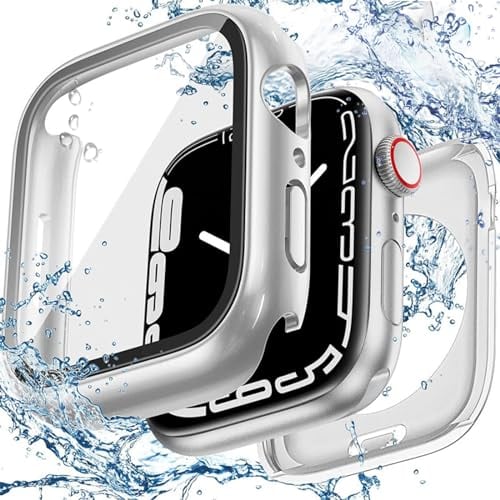 【360度防水設計】AIYYXX For アップルウォッチ カバー Series 10/9/8/SE2/SE/7/6/5/4 41mm ガラスフィルム+PCフレーム 一体型 2 in 1 前後の保護 IP68 防水 apple watch カバー 対応 高透過率 キズ防止 指紋防止 簡単に取り付け・取 全面保護 アップルウォッチ ケース(Series 9/8/7,41mm,シルバー)