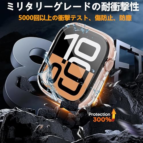 ✅【2 in 1 全面保護】apple watch10 46mm ケース 二重保護ケースは、全方位的な保護に重点を置いています。一体型保護構造全体で、全面カバー型保護ケース、頑丈な背面カバー、9H強化ガラスフィルムから構成されています。全面カバー型保護ケースと背面カバーは、高硬度で耐久性のあるPC素材を採用し、優れた耐衝撃性と耐擦り傷性を実現し、あなたの貴重なapple watch 10がさまざまな角度からのダメージを防ぎます。アップルウォッチ10 46mm カバー 表面保護スクリーンは、超薄型の9H強化ガラスフィルムを採用し、高透過性、高感度の3Dタッチ操作が可能で、画面操作に影響を与えません、裸で使用しているのと、たいして変わらないタッチの反応の良さ。