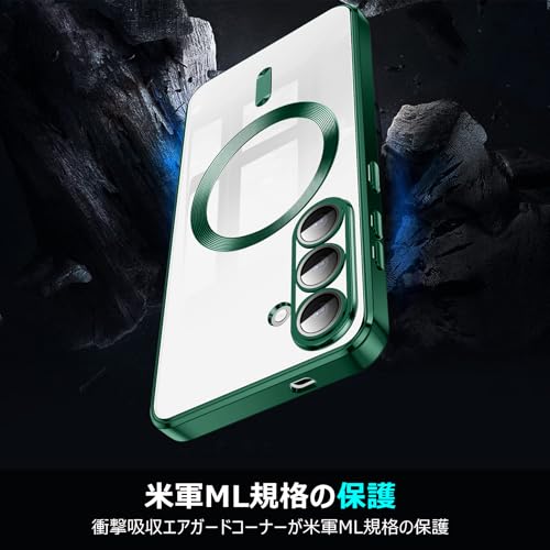 Galaxy S25 用ケース Magnetic対応 ワイヤレス充電 軽薄型 TPU ソフト ギャラクシー s25 用スマホケース マグネット搭載 耐衝撃 米軍MIL規格取得 黄変防止 耐久性 ストラップ穴付き おしゃれ 携帯カバー 緑 D77-97