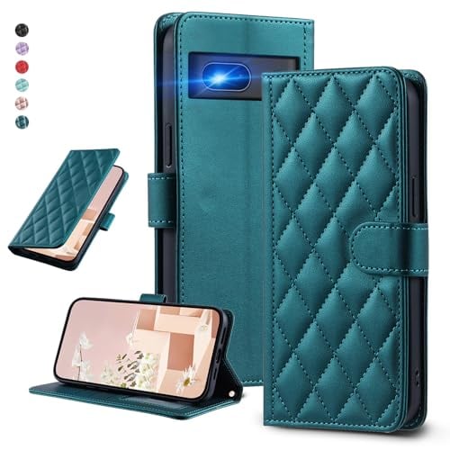 UnivoColors Google Pixel 7 キルティグレザー調 手帳型ケース エレガント 高質PU マグネット開閉式 カード収納機能 スタンド機能 液晶全面保護 レンズ保護 ストラップ付属(グリーン)N