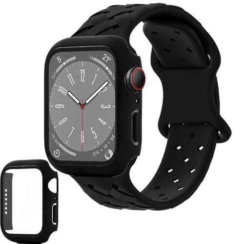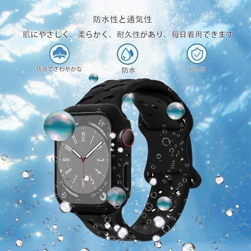 [INIAYOH] コンパチブル Apple Watch バンド アップルウォッチ 41mm バンドとケース 編み込み ゴム 互換用のApple Watch Series 7/8/9 全面保護(ブラック